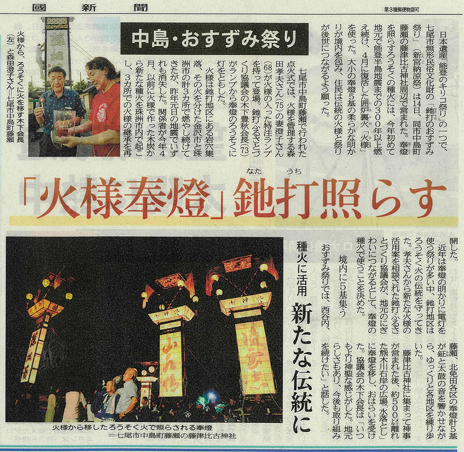 「新生火様」はこれからも七尾市、珠洲市、金沢市で守られ燃え続けていきます。